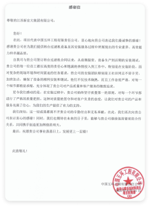 中国五环工程有限公司再感谢信中提到:“贵公司对质量的坚守和对客户负责的态度,让我们对贵公司的产品和服务充满了信心,为我们的生产提供了有力的支持。”